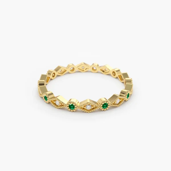 925 Silver Emerald Art Deco Wedding Band