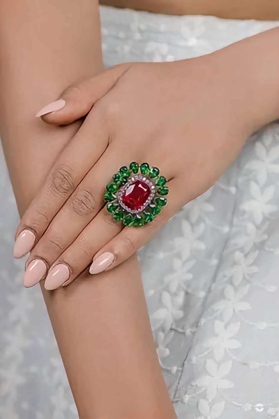 With a shipping time of 7–8 business days and responsive customer support via live chats and video calls, Swarish Jewels Boutique ensures a smooth and luxurious shopping experience. Make a memorable impression with this stunning ruby and emerald cocktail ring.