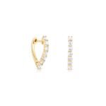 925 Sterling Silver drop huggie earrings with thick 14K Gold or Rose Gold plating and sparkling CZ stones. Lightweight, hypoallergenic, and full of shine.