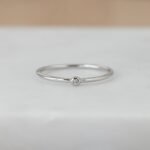 - Simple, thin band featuring a delicate solitaire stone. Perfect for a minimalist look, or stacking.