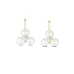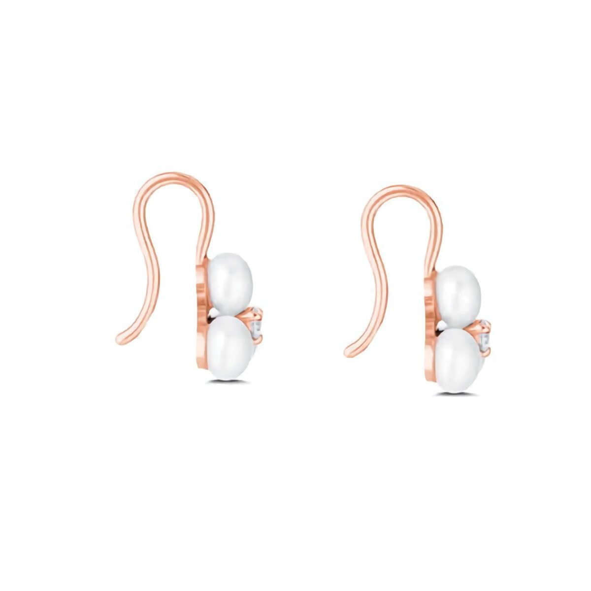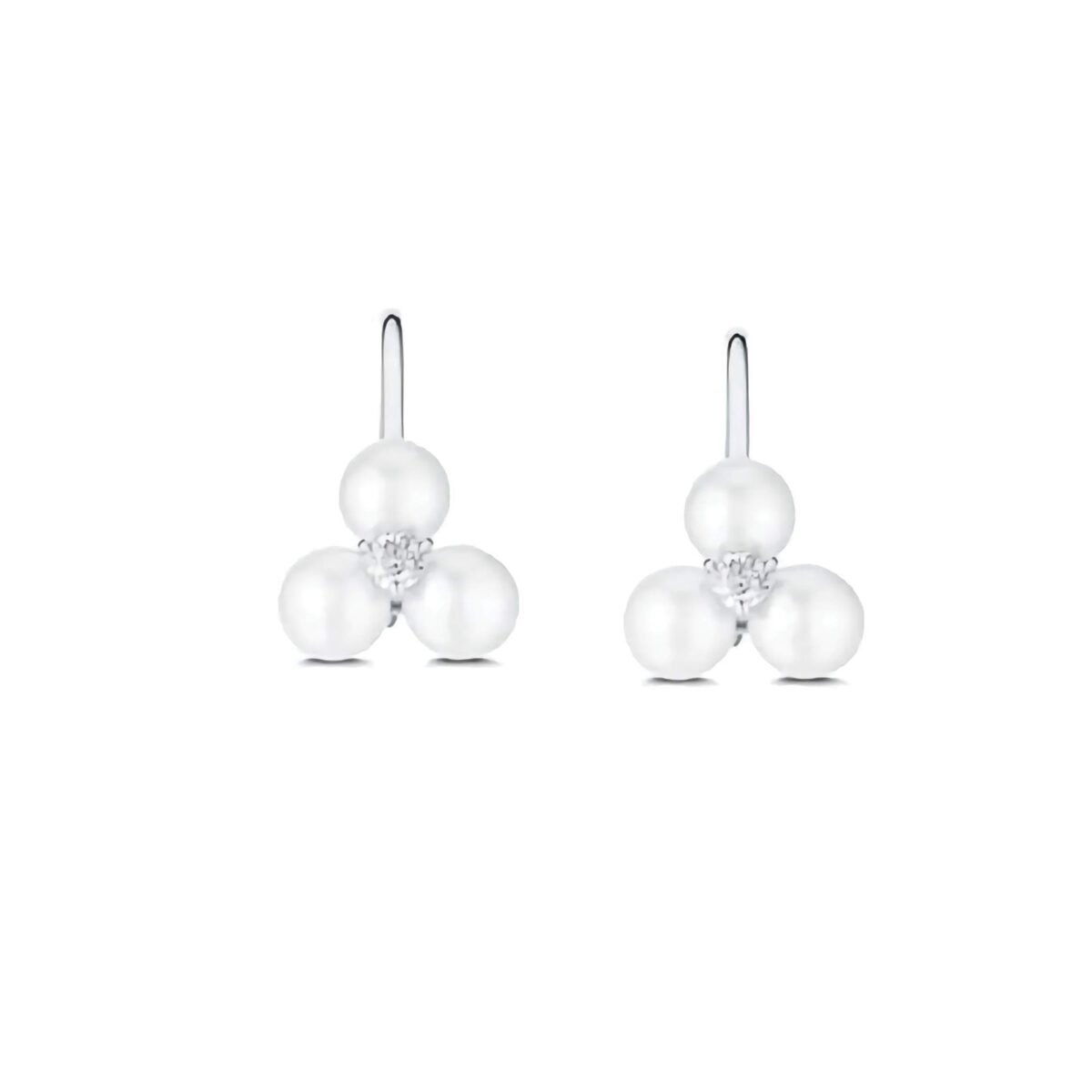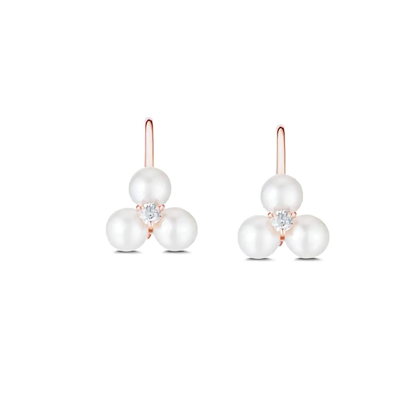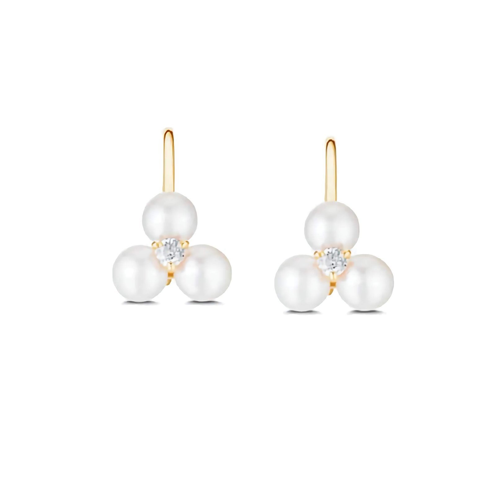 925 silver earrings with three Swarovski pearls, CZ accents, and 14K Gold or Rose Gold plating. Hypoallergenic and ships in 7–8 business days.