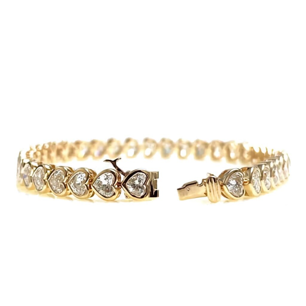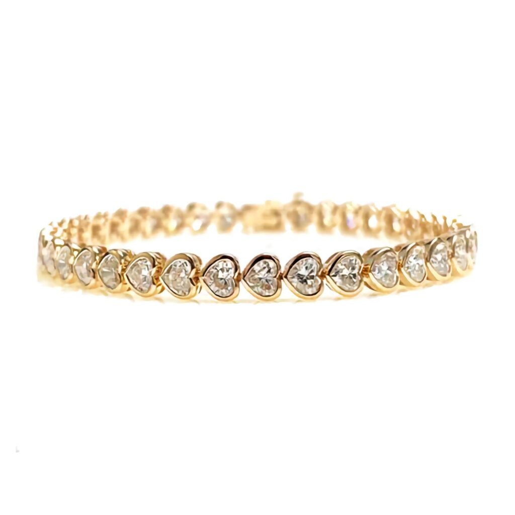 925 Silver Bezel Set Diamond Hearts Tennis Bracelet