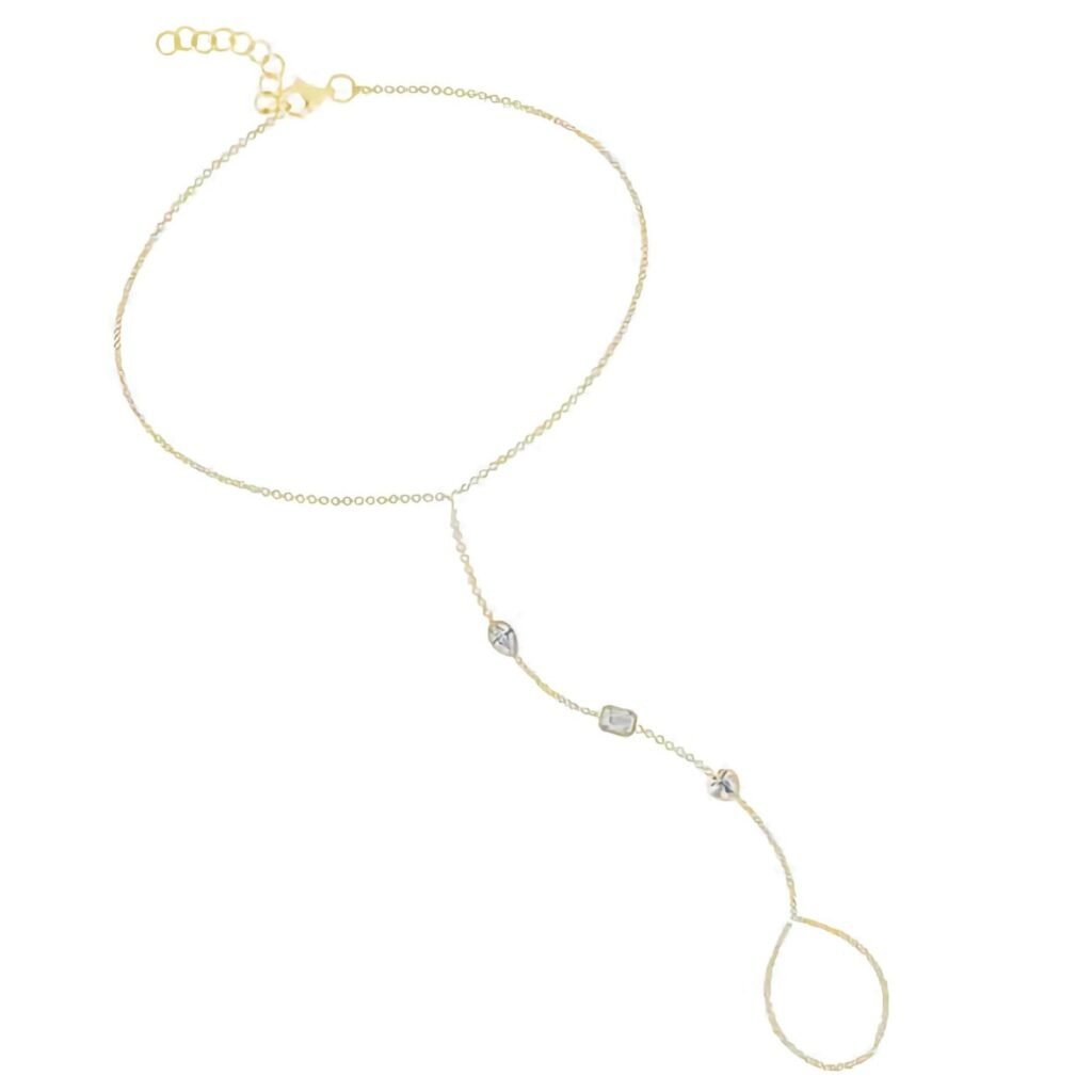 925 Silver Fancy Shape Bezel Hand Chain Bracelet
