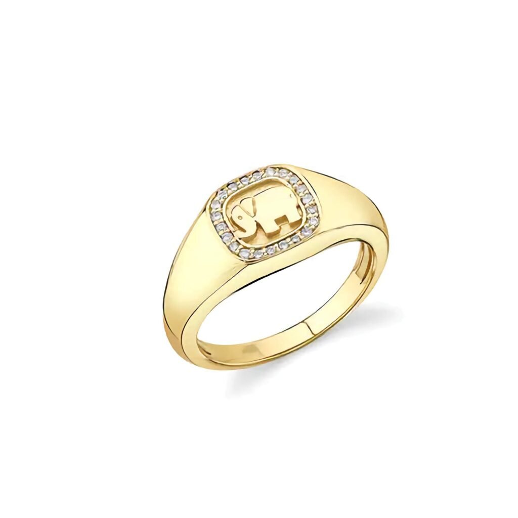925 Silver Diamond Elephant Icon Signet Ring
