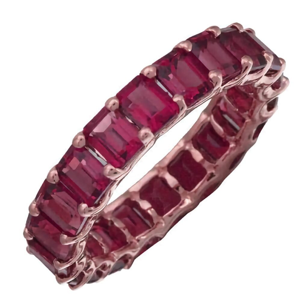925 Silver Emerald Cut Ruby Eternity Ring